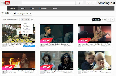 Youtube վիդեոհոսթինգը յուրաքանչյուր տարվա վերջում ամփոփում է տարին և հայտարարում է տվյալ տարվա ընթացքում ամենաշատ դիտված տեսանյութերը: Սակայն բոլորովին էլ պարտադիր չի սպասել տարվա վերջին, որպեսզի տեսնեք այդ տեսահոլովակների ցուցակը: Youtube-ում կա Charts բաժին, որտեղ կարող եք գտնել տվյալ օրվա, շաբաթվա, ամսվա կամ տարվա ընթացքում ամենաշատ դիտված տեսահոլովակները: