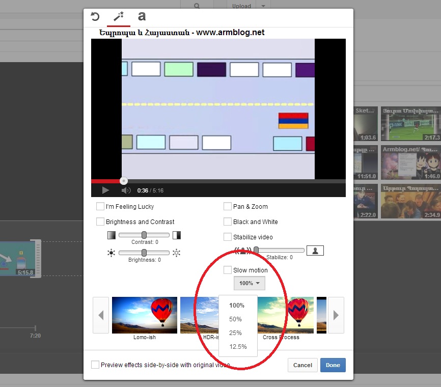 Youtube վիդեոհոսթինգի կարգավորումներում հայտնվել է մի հետաքրքիր ու օգտակար ֆունկցիա, որը թույլ է տալիս փոփոխել տեսանյութի գործարկման արագությունը և ստանալ Stow Motion էֆեկտ: